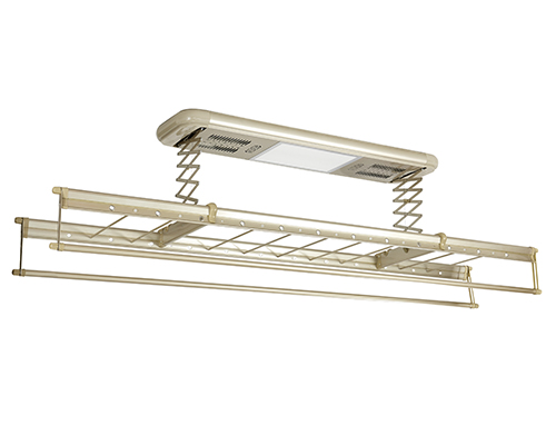 USK-037B宝马金电动晾衣机4杆加强,空间增晾:增设2根晾被杆,可折叠收放。贴心防风孔,有效地防止衣服被风吹掉或者挤到一起。人性化4杆可伸缩晾干,不用时收起节约空间。小身材大作用,满足各种晾晒需求。遥控控制,智能便捷:无线遥控让你轻松完成升降、风干、烘干、消毒等功能,从此摆脱晾衣漫长劳累过程,一次解决全部问题。简直是"懒癌重症患者"和小个子的福音,再也不用垫高脚,抬高手,仰着头了。